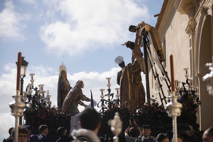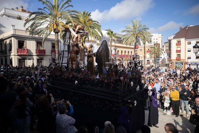 Desde la Parroquia Mayor de San Pedro, la Hermandad del Descendimiento presentó el conjunto escultórico de León Ortega, que, como animado por el viento, caminó por las calles de Huelva. La Virgen de la Resignación, tras sus pasos, completó una procesión que destacó por su expresividad y solemnidad.