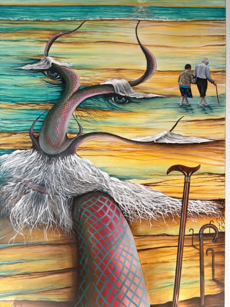 Sus cuadros, entre los que destacan títulos como ‘Tablero político’, ‘Filtro de belleza’ o ‘El bicho’, invitan al espectador a detenerse y reflexionar sobre problemáticas tan diversas como la manipulación política, el impacto de la tecnología en la identidad o la memoria de las víctimas de la pandemia.