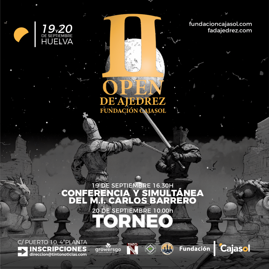 Todos los aficionados y aficionadas al ajedrez tienen una cita ineludible con el II Open de Ajedrez Fundación Cajasol, un evento que se afianza tras el éxito de la primera edición y que tendrá lugar los días 19 y 20 de septiembre en la sede onubense de esta entidad, situada en calle Puerto, número 10, cuarta planta.
