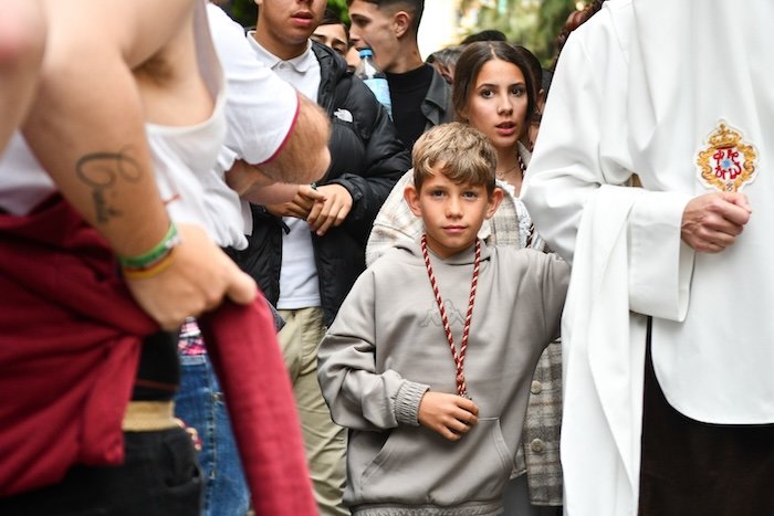 La cofradía, con sede en la Parroquia de Nuestra Señora del Carmen, inició su recorrido a las 16:45 horas, siendo la segunda hermandad en salir en esta jornada. A pesar de las previsiones de lluvias débiles, la hermandad decidió mantener su horario, confiando en que las condiciones meteorológicas permitirían realizar el recorrido sin contratiempos.