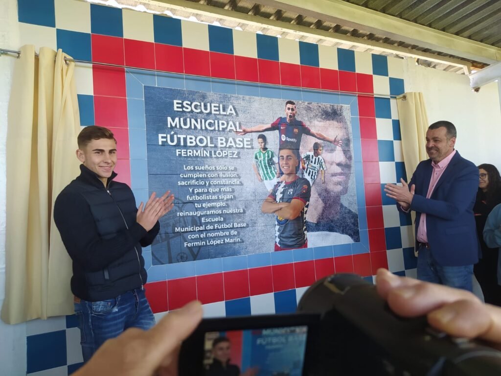 Fermín López Marín, que inició su andadura futbolística en la escuela municipal de fútbol de su pueblo que ahora lleva su nombre, afronta actualmente su tercera temporada en el primer equipo del FC Barcelona, con el que ya se ha proclamado campeón de Liga y de la Copa del Rey.