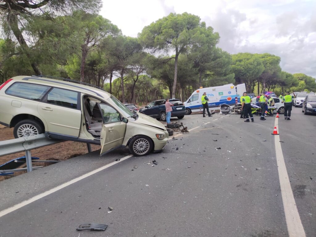 En el operativo han participado efectivos del parque de bomberos de Aljaraque junto con Guardia Civil de Tráfico, servicios sanitarios y personal de mantenimiento de carreteras.
