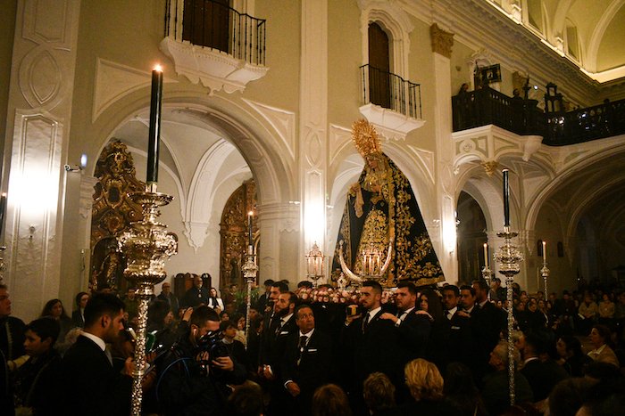 Ninguna de las cuatro hermandades del Jueves Santo el Huelva pudo esquivar la lluvia por lo que todas se quedaron en el interior del templo para hacer siu estación de penitencia.