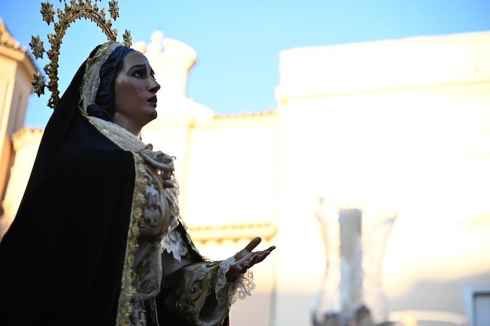 El Cristo de la Buena Muerte avanzó con solemnidad, envuelto en un ambiente de respeto que acentuó el carácter austero de la hermandad, mientras que el paso de la Virgen aportó un contrapunto de elegancia y emoción. Una vez más, la cofradía volvió a reflejar la esencia más íntima y espiritual de la Semana Santa onubense.