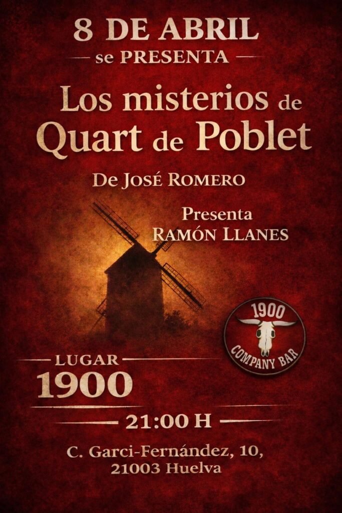 La Sala Bar 1900 de Huelva prosigue con su viejo ciclo cultural de Las Noches del 1900, en esta ocasión con la presentación de ‘Los misterios de Quart de Poblet’, la nueva novela del escritor onubense afincado en Valencia José Romero Muñoz (Yoosset).