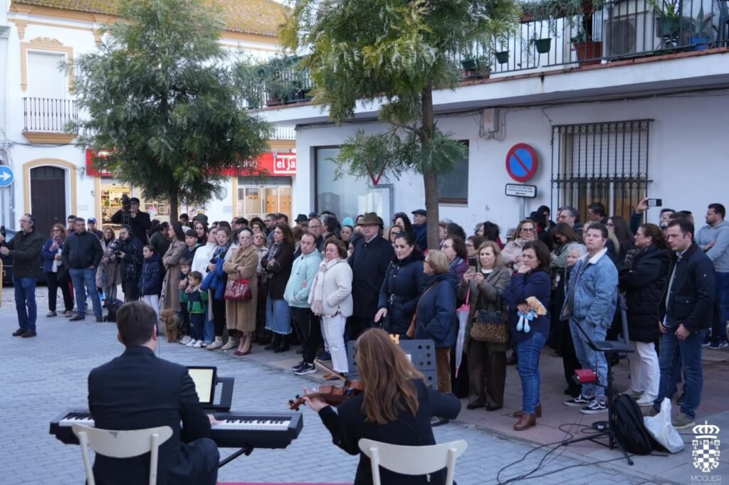 El alcalde, Gustavo Cuéllar, junto a los familiares del desaparecido artista, develaron este martes el rótulo de la calle Cantautor Nicolás Capelo en un acto que contó con una masiva afluencia de moguereños que se sumaron al homenaje tributado por el Ayuntamiento de Moguer.
