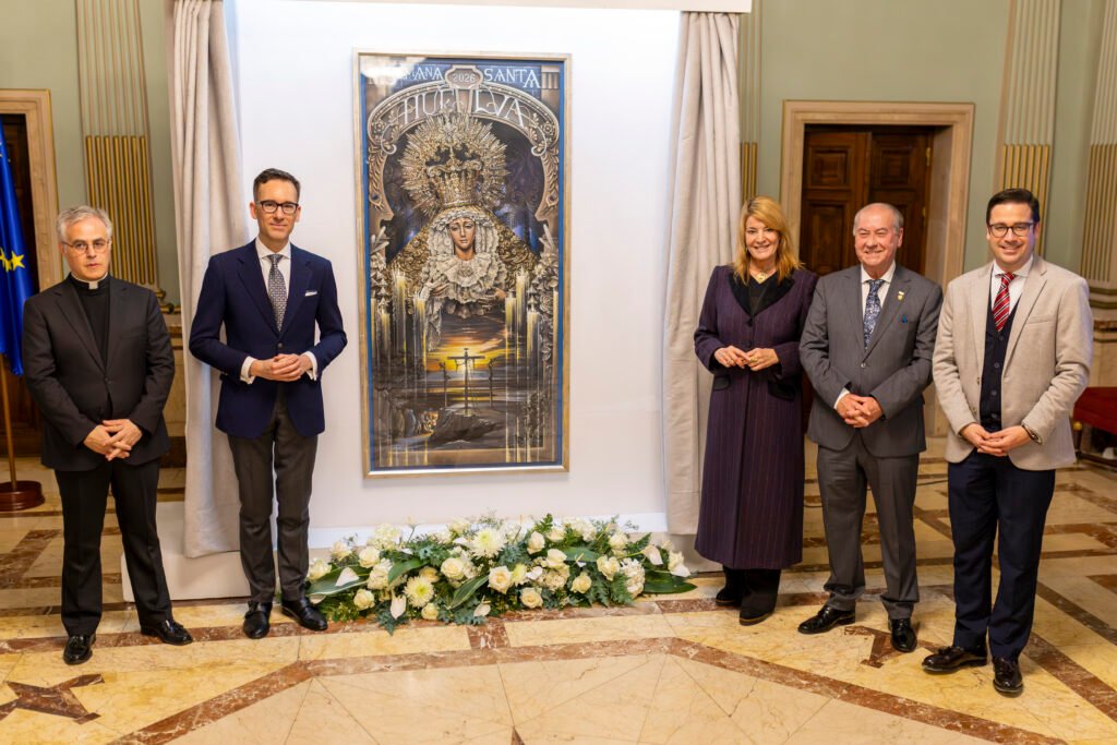 Respecto al cartel, Miranda ha querido felicitar de manera muy especial al artista, “por representar de forma tan sensible y tan bella nuestra Semana Santa y nuestra ciudad, ya que sin duda en este cartel se percibe tu amor por nuestra tierra, con una obra que conmueve y emociona”. Un cartel, ha continuado la alcaldesa, “en el que Huelva es protagonista junto a una de sus grandes devociones, la Virgen de la Victoria, y en el que has sabido plasmar esa dualidad entre la gloria de la Resurrección, y la pasión y muerte, incorporando elementos tan significativos de nuestra ciudad, como el Cabezo del Conquero transformado en el monte Gólgota, junto con ese traslado al sepulcro representado en el misterio de la Santa Cruz, la Ría y las fachadas clásicas del casco histórico de Huelva”.