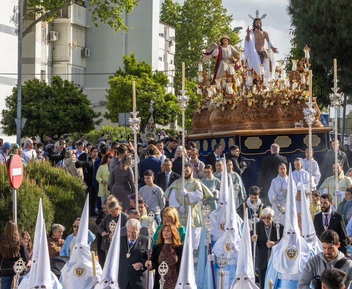 La Hermandad de la Sagrada Resurrección de Huelva culminó la Semana Santa 2025 con una procesión llena de fervor y emotividad. Desde la Parroquia de Nuestra Señora del Pilar, el paso de misterio del Señor Resucitado recorrió las calles del barrio de La Hispanidad, acompañado por numerosos fieles que celebraron con alegría la Resurrección de Cristo.
